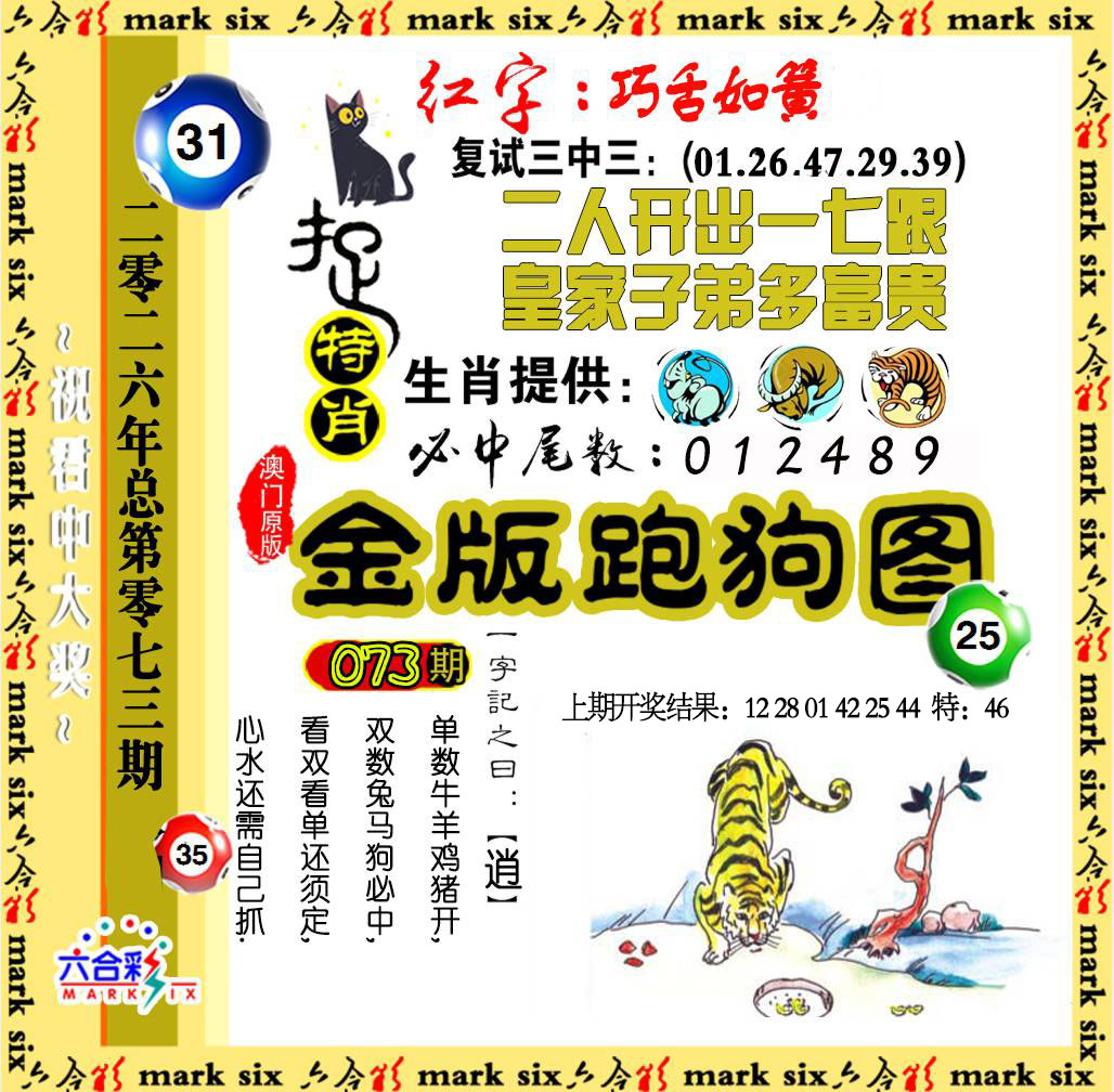 073期:六福宝典【绝杀①尾】〓公开验证√